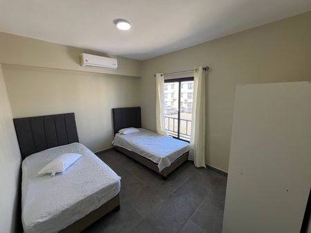 Descubre la comodidad de vivir en un espacio moderno y funcional: 2 habitaciones con camas individuales, sábanas, almohadas y clósets